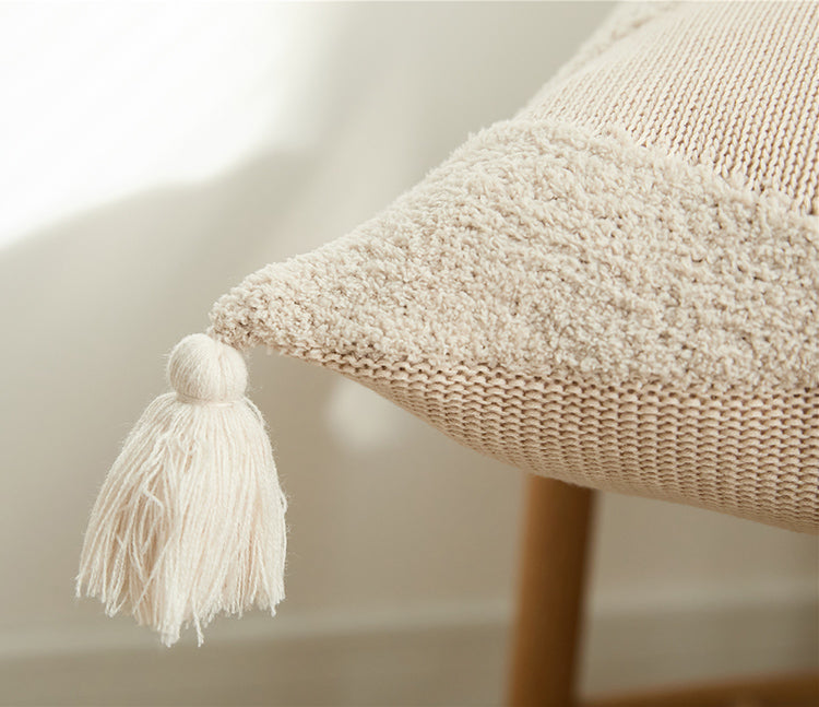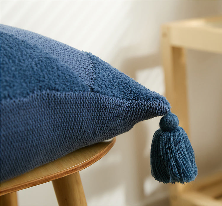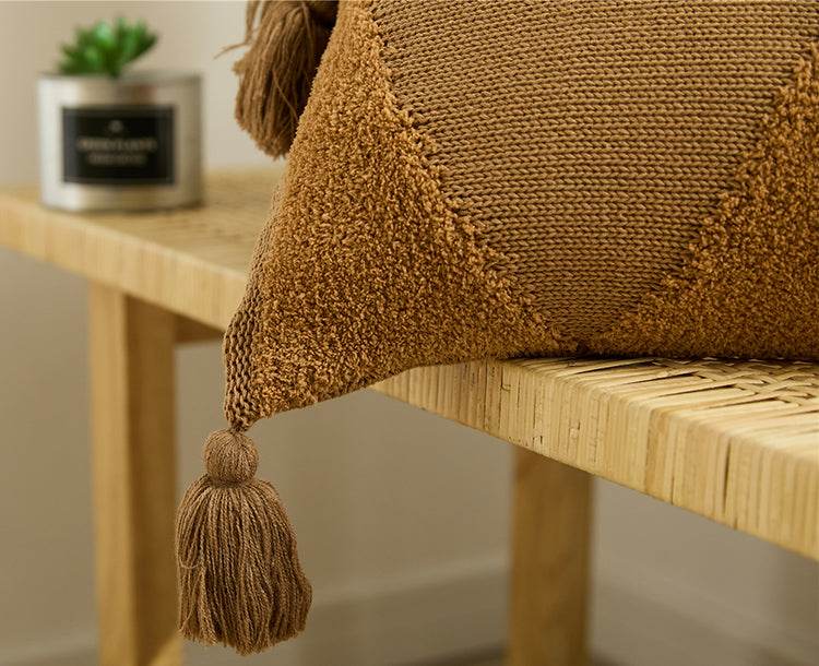 The cushion cover features a square shape with dimensions of 17.7" L x 17.7" W, making it a perfect fit for most standard cushions. The same-color tassels add a playful yet sophisticated touch, enhancing the overall aesthetic of the cushion.